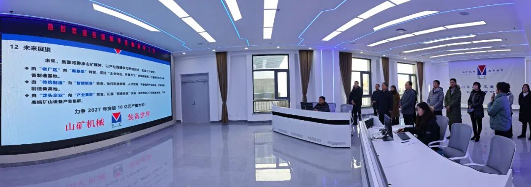 專家團一行參觀了山礦智能礦山機械產業園建設的數智運營中心和生產車間,聽取了公司發展歷程以及智慧工廠規劃、建設的相關介紹,詳細了解了廠區建設、生產流程和制造工藝等。專家團一行對山礦公司在智能制造的發展給予了肯定,并就下步企業智能制造和高質量發展給予了指導,提出了好的建議。